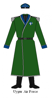 Note: The rank of Yeņişbaşı is the highest rank in the Uygur armed forces, and is given to a single individual who oversees both of the armed services. Most of the time this is a separate individual from the President of Uyguristan, but this was not always the case during the Snorist period. The Yeņişbaşı normally appears in Army uniform, though there are separate Air Force insignia for the rank, to be used for those times where it would be usual for the Yeņişbaşı to appear in Air Force uniform.
