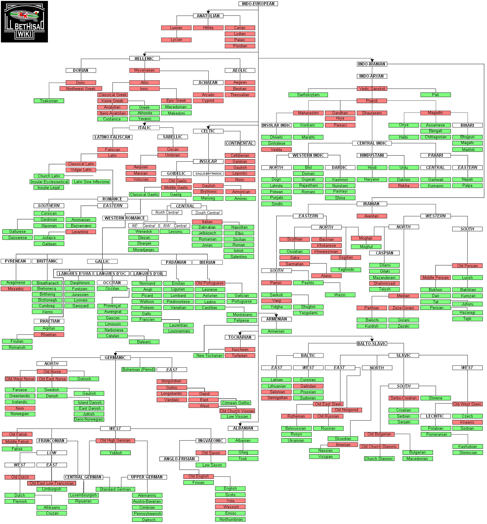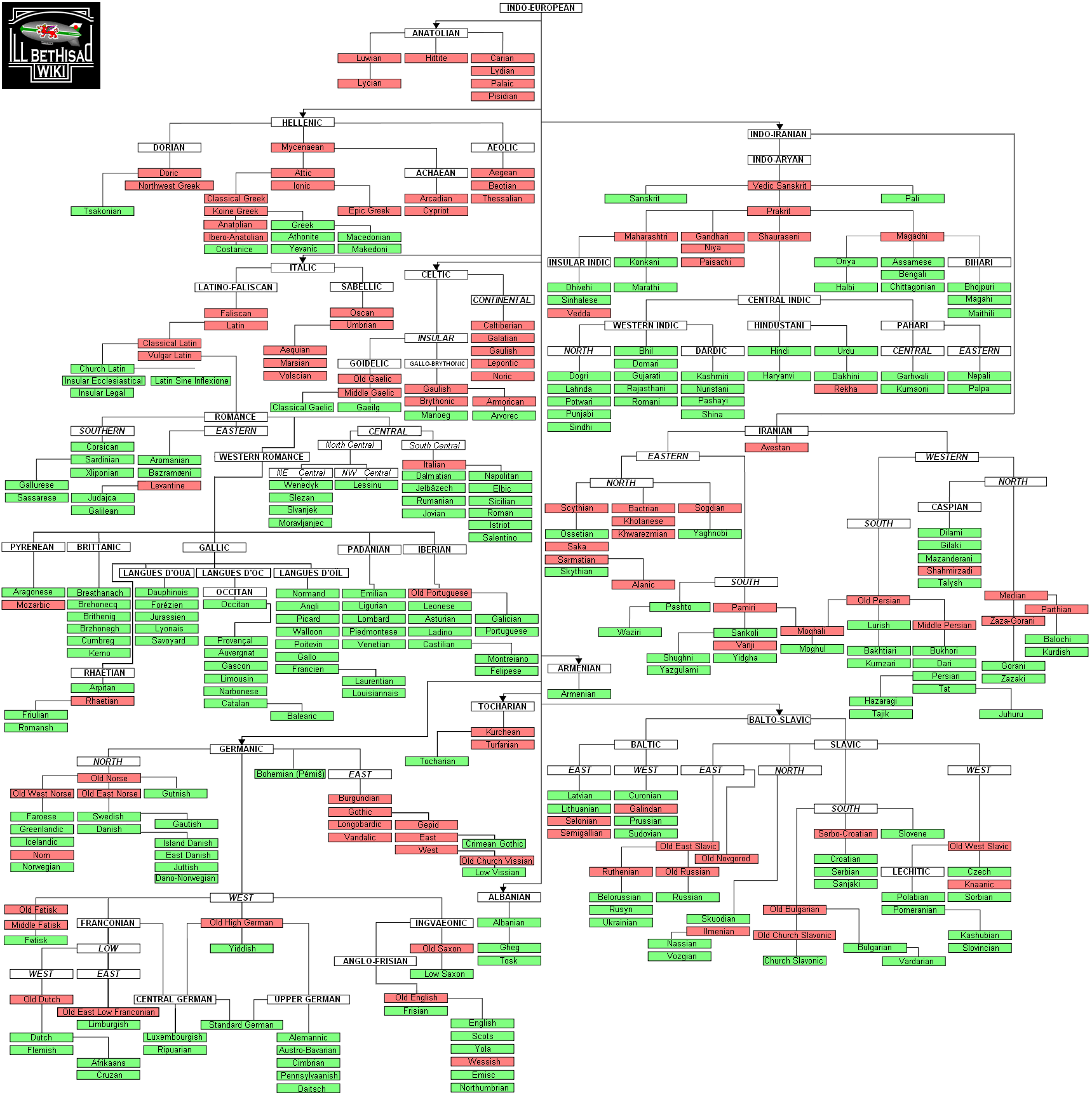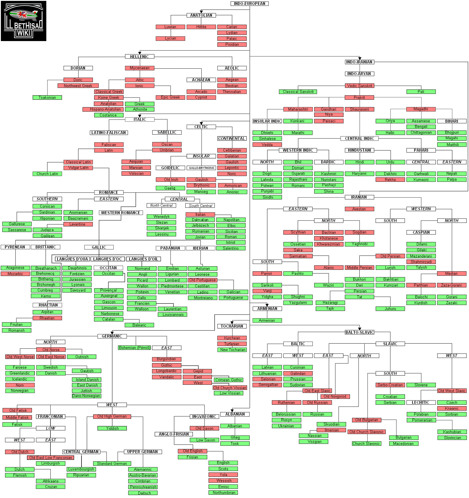 Graphic representing the Indo-European Language Family, as it exists in Ill Bethisad.