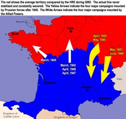 Map of France during GW2, showing major military operations.